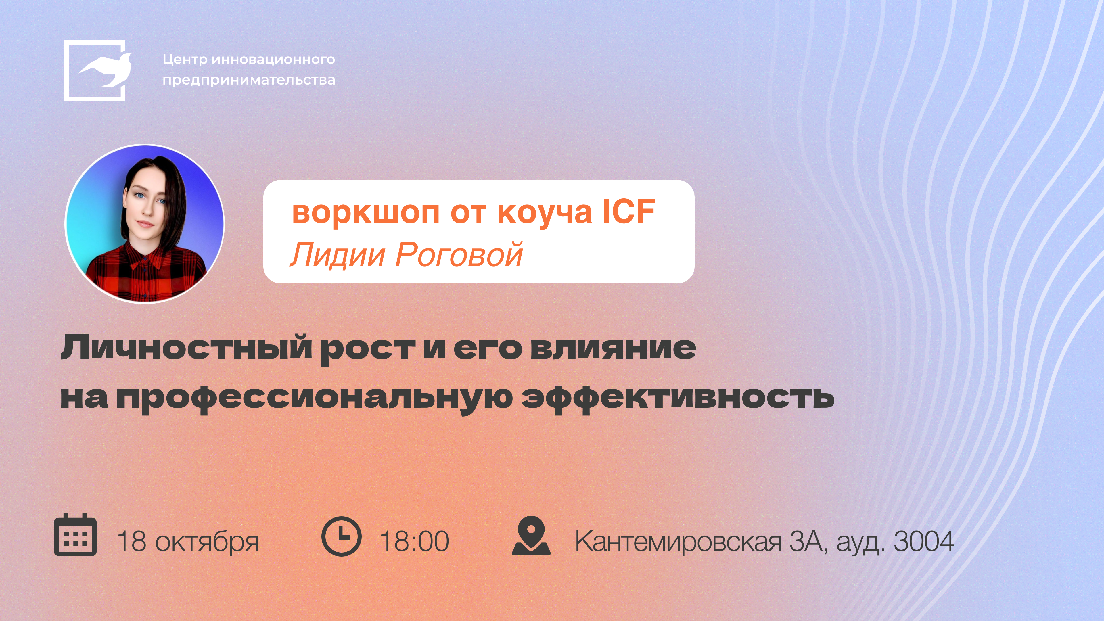 Мы спешим пригласить вас на воркшоп от Лидии Роговой ICF Coach. Тема: "Личностный рост и его влияние на профессиональную эффективность"